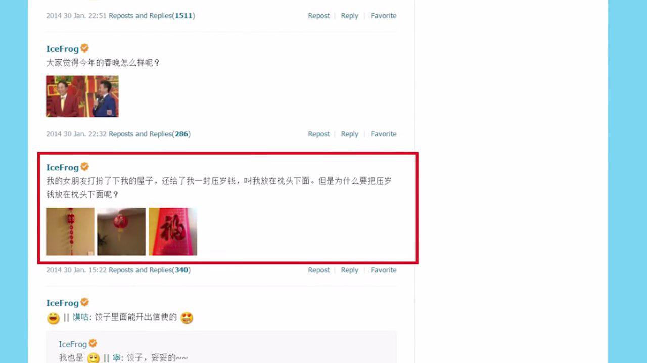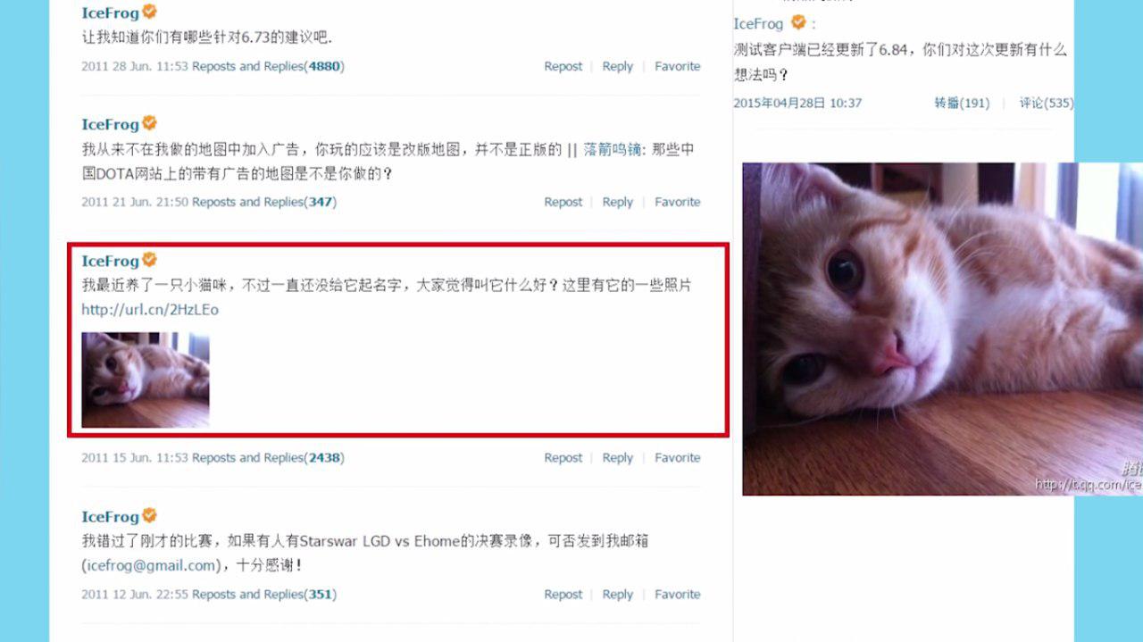 در سال 2014 یک سری عکس به اشتراک میزاره Icefrog از اتاق خودش که نوشته دوست دختر من برای سال نو چینی اتاق من رو تزیین کرده و به من گفته پولم رو بزارم زیر بالشتم , من دلیل این کار رو نمیفهمم .