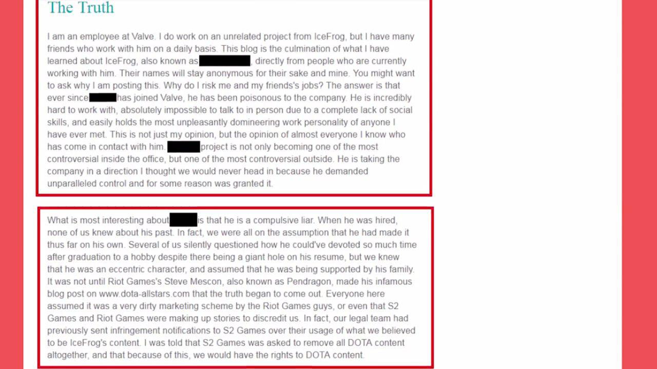 این شخص در این مقاله اگه توجه کنید یک سری از جاهاش فیلتر شده که به گفته کاربر های اینجا ها اسم خوده Icefrog اورده شده و به همین دلیل با پیگیری های قانونی Valve این مقاله ادیت شده و از اینترنت حذف شده است.